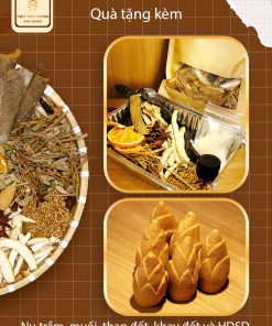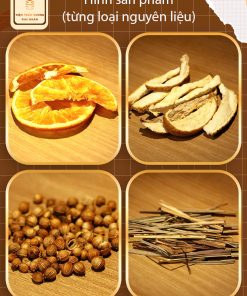 – Thành phần: 11 loại dược liệu và thảo mộc thiên nhiên gồm: Bồ kết – Hương nhu – Hoa hồi – Vỏ Cam – Vỏ bưởi – Hạt ngò – Quế – Gừng – Sả – Lá nguyệt quế – Ngải cứu.